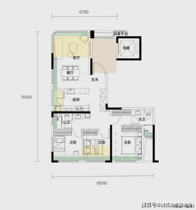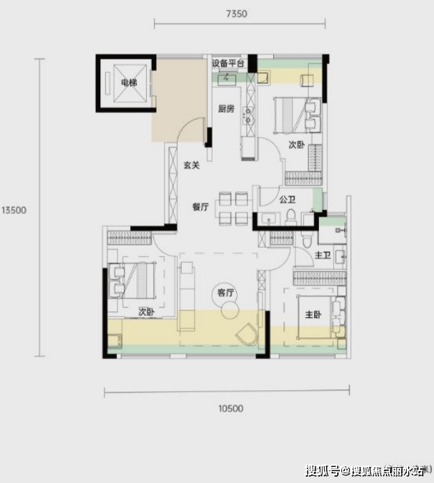 比如这套115㎡,你敢相信这个面积段能做到 边户、270°落地窗、三个卧室全朝南、独梯光厅入户?
