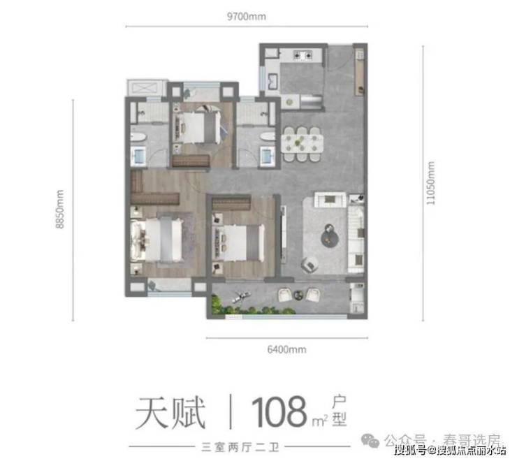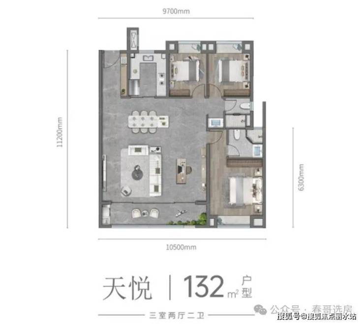 龙湖清能天曜提供多种户型选择,包括9700mm、10800mm、14700mm的不同户型,面积从108平方米到171平方米,涵盖三室两厅两卫至四室两厅三卫的各种户型。具体户型包括: