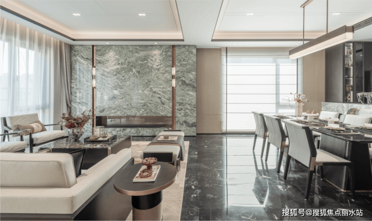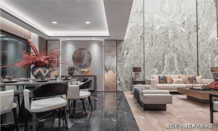 从《千里江山图》巨幅画卷舒展,再到三足金蟾/聚宝盆/清泉流石头/太湖石景等中式元素点缀,和达·珺山呈现归家五重仪式礼序,以院落空间独有的归属感和聚合感,复现东方雅韵。