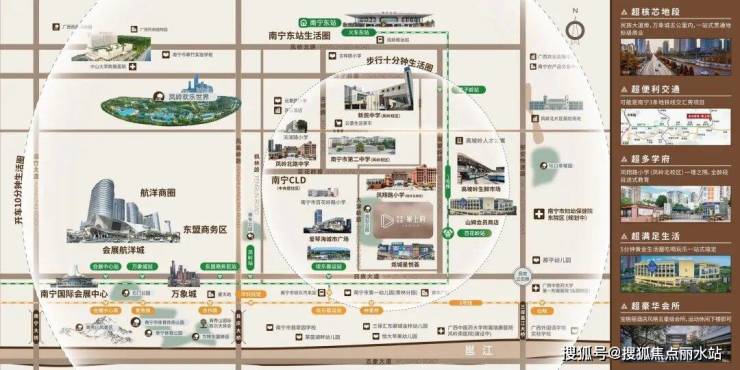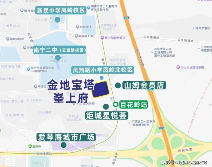 【交通配套】家楼下即是地铁1号线百花岭站 与南宁首个高铁站南宁东站距离仅约3公里 四纵四横核芯干道路网 快速通达城市各个区域 四横分别是百花岭路、云景路、佛子岭路 凤岭北路 四纵指的是高坡岭路、凤凰岭路、那安快速路和厢竹大道