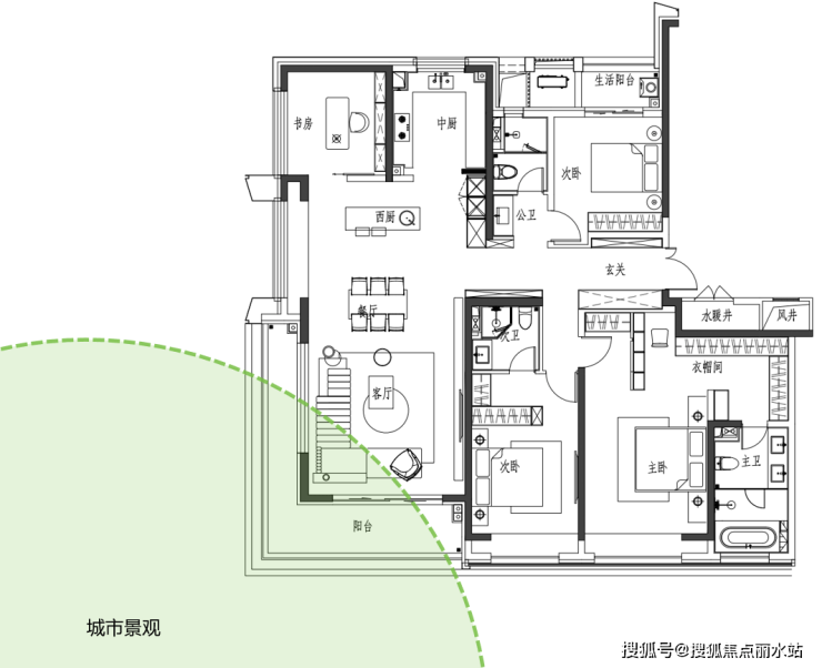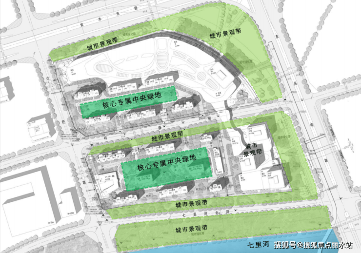 从这一点看,郑东万象城幸福里对于住宅“可识别性”的探索可称作一次有价值的“创新”。规划结构清晰,朝向最大化利用南面七里河的景观优势,中心庭院拥有极致进深,住宅与景观相互串联;建筑布局将大户型布置在前排,总部超大尺度的核心专属中央绿地嵌入两幢点式楼王;景观从南侧城市景观带一侧融入规划设计中层层递进,呈现出深居的意境。