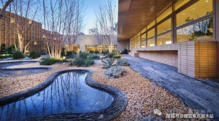 度假酒店式归家中岛体验,洄游动线内外造园,穿厅即入“艺术生物群水上花园”玄关庭院。