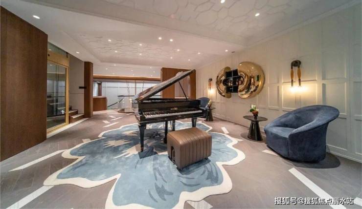 比如,地面石材结合拼花工艺的公区大堂,随处可见爱马仕灰石材、月光石、水晶屏风,奢感十足。