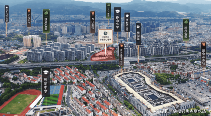 周边,义乌之心、义乌天地、绿地朝阳门、绣湖里商业中心等商业环绕;香山小学、胜利幼儿园、绣湖中学等优质文教云集(项目不作学区承诺,具体以教育局公文为准);绣湖轻轨站、国贸大道、香山路、稠州路等构建起高效交通;市政府、绣湖广场、绣湖公园则滋养着丰沛的都市生活。