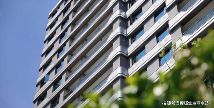建筑底部是浅色石材和香槟金铝材搭配,上部灰色底漆加银色金属条拉开宽幅,而且是曲线造型,是一种大气的美。