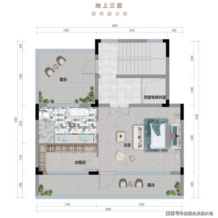 三层还有南北2个大露台,既可以满足日常洗衣晾晒的需求,也可以满足男女主人赏花赏月的浪漫需求。