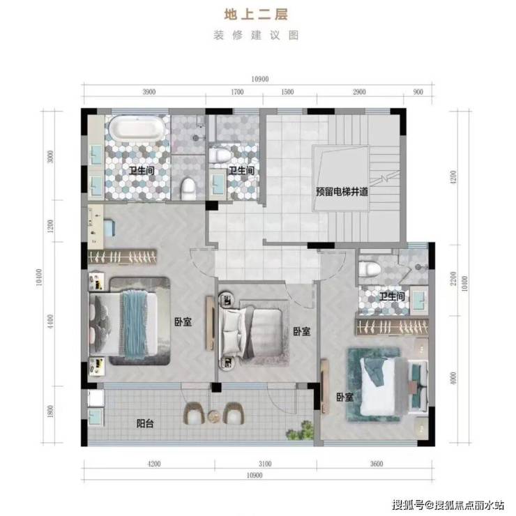 5房的设计(二层设计有3个房间),则可以满足“三孩家庭”的居住需求。