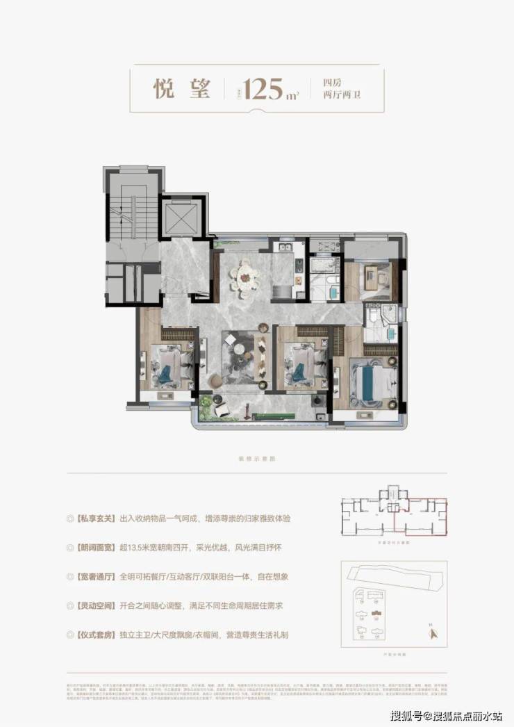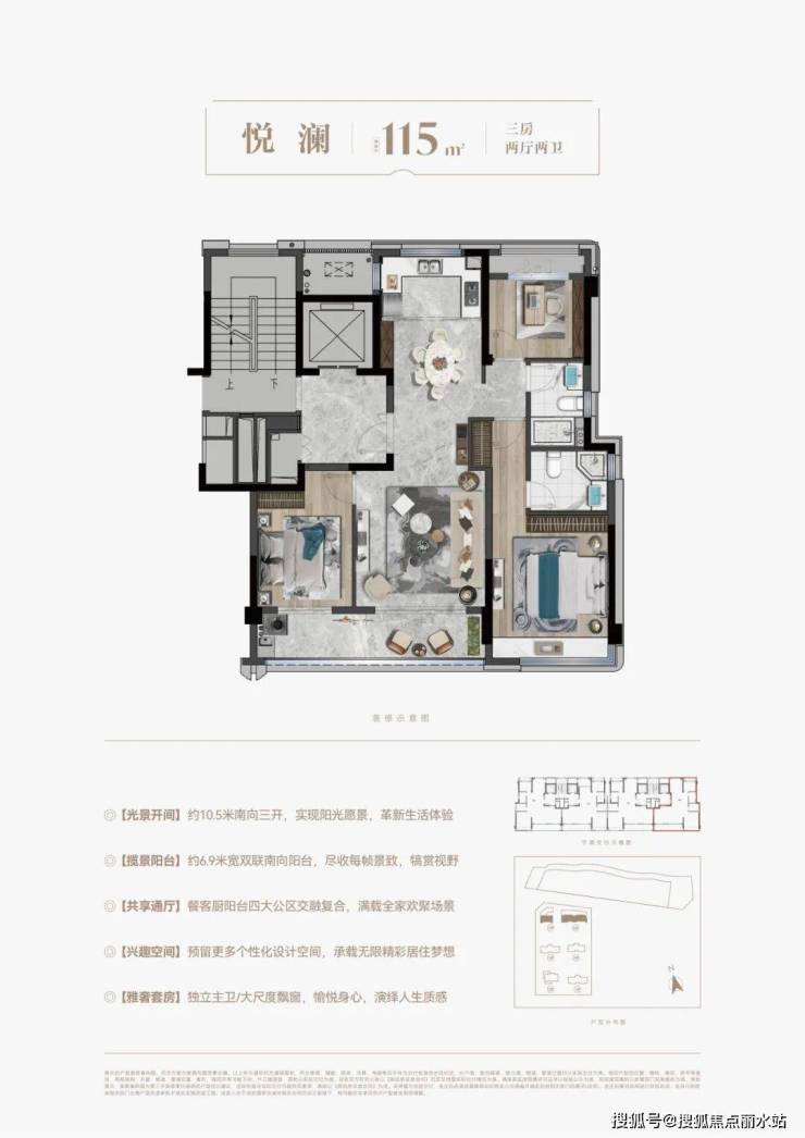 另外,拥享约10.5米朗阔面宽、约6.9米双联阳台、LDKG奢阔通厅等创新规划的建面约115㎡,与设计私享玄关、超13.5米朝南四开间、一体化餐客厅等建面约125㎡,营造一种别样沉浸式的丰盛意趣体验。