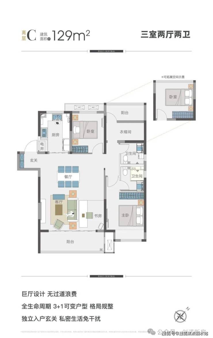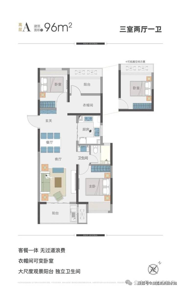 创新户型:高扩容空间,阳台和飘窗均可改造,可使用面积增加约11㎡,