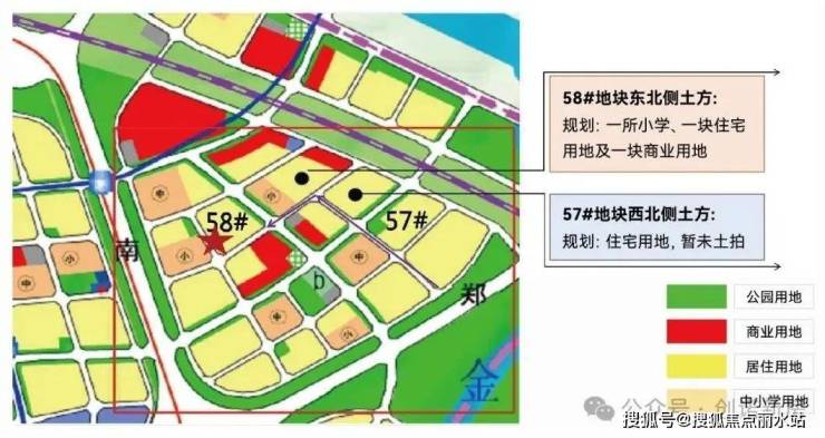 周边空白地块后续大多数均为待开发住宅用地以及教育用地和一块商业用地:58地块的东北侧规划的为小学教育用地,让孩子在家门口即可享受优质教育资源;另外,小学的临近地块,也有一块商业用地尽享周边良好的商业配套资源,周边每一块住宅的外围都是绿色的标志,绿色代表公园绿地,住宅周边绿化不断提升,进一步改善人居环境。