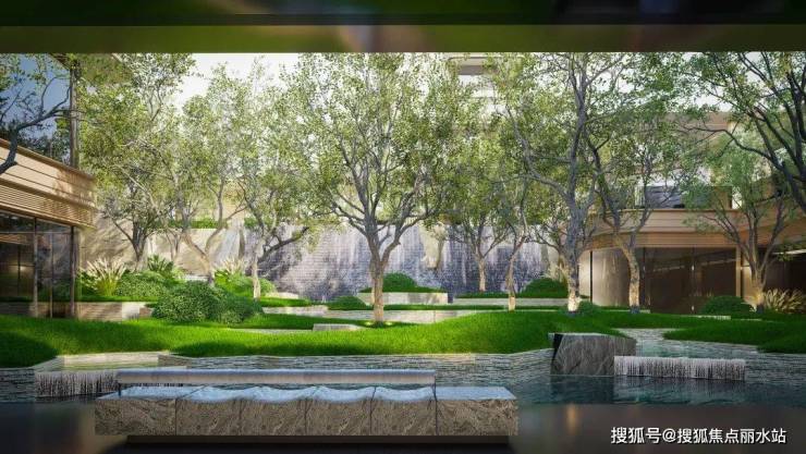 近30米宽的双横轴宽绰绿廊,下沉式庭院在内的诸多小品,以及单套户型东南角和西南角大面积悬挑露台,空中花园与地面花园兼备,构成了前所未见的“森系人居”。