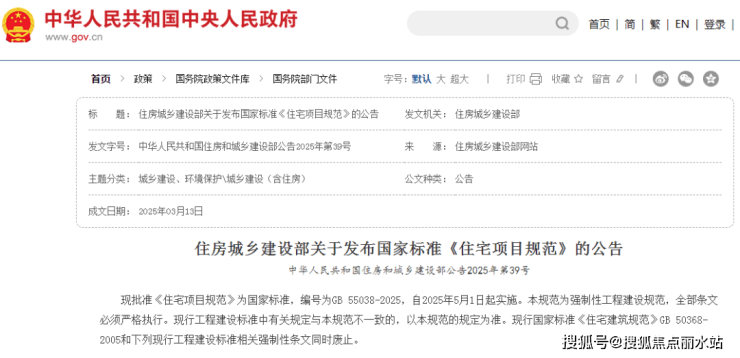 ▲《住宅项目规范》公告丨图源中央人民政府网