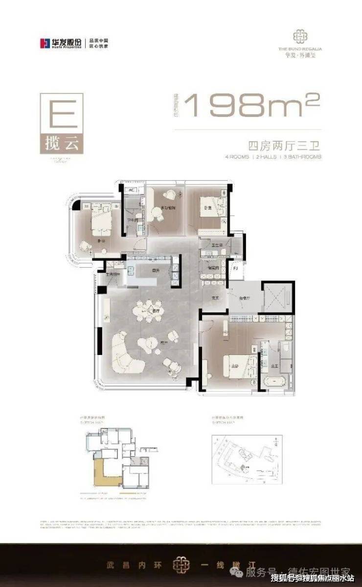 华发外滩玺(武昌-武昌滨江)示范区预计近期开放,主推建面约159-244㎡带装修房源。