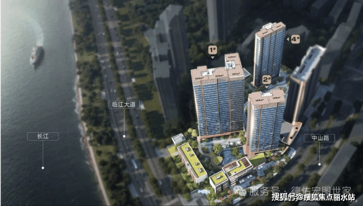 其中1号楼只有1个单元斜对着看江,1、2号楼部分看江,中高区西边套户型能做到正面看江和270°观江。