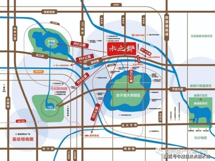 项目周边10分钟可达郑东新区北龙湖商圈,CBD商圈,龙子湖商圈,距离项目7公里左右还有丹尼斯新天地