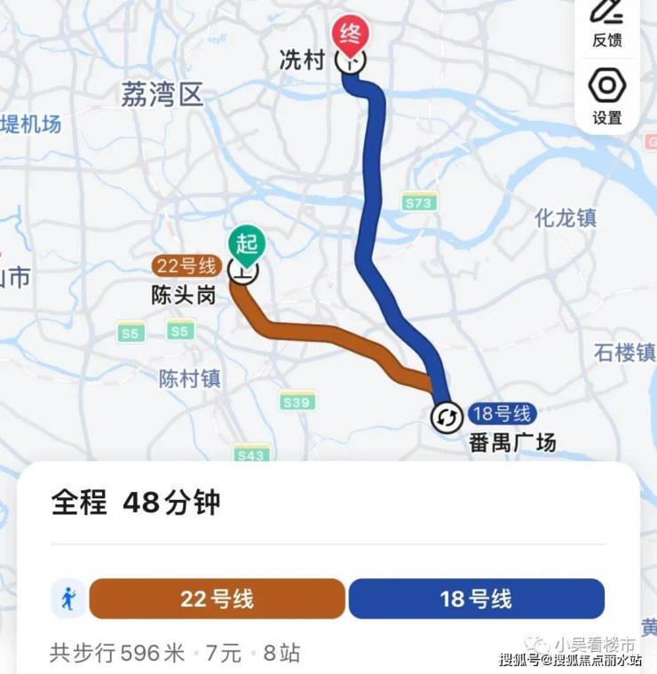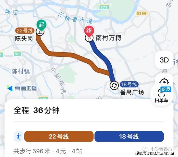 地铁去往万博:小区步行至陈头岗站,乘坐22号线到番禺广场换乘18号线,再到万博仅4个站,全程耗时36分钟。
