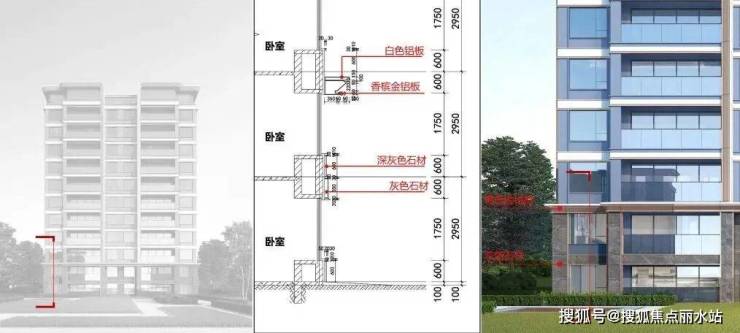 比如合肥招商玺的立面基座采用石材,侧面采用仿石铝板,体现基座的厚重感。既优化了成本,又保持了立面的美观效果。