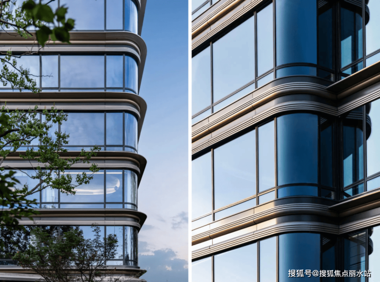 伟星长江之歌和伟星T10项目,做了360°全景环幕玻璃立面从弧形玻璃到弧形窗框,再到弧形铝板,这些流畅的曲线设计,赋予了建筑一种灵动而柔美的艺术气息。