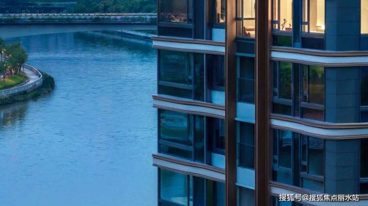 比如杭州建发华发·江华玺云13-16层小高层,以三段式设计立足钱塘江畔,四面大面铝板的外立面,悬浮式设计的窗框,装饰着“双眼皮”凹槽+定制华纹,竖向点缀的金色直线线条,阳光照耀下熠熠发光,非常具有辨识度。