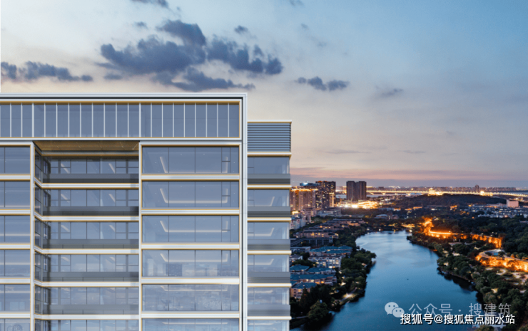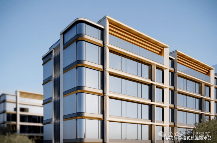 超流体曲线立面:具有差异化的颜值审美,弧形线条强化艺术韵律感,现代材质体现科技时尚感,大面积采光面凸显景观视野最大化等特点。