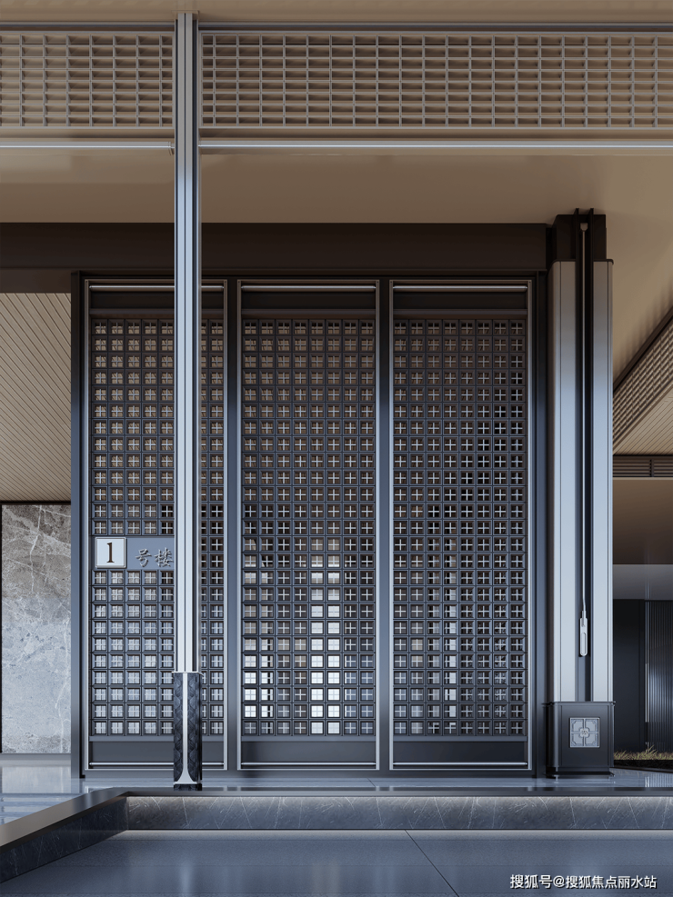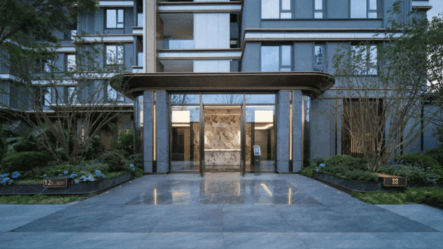比如龙湖·景粼天序在门头设计及材料选择上,选用多层次线脚造型和斜边处理,雨棚设置线型连续灯带,勾勒出动感流动效果;门头搭配玉石专属族徽,增强归家仪式感。仿石砖密拼的工艺,南北立面定制设计层间金属格栅,打造独有的立面肌理,兼具美学与实用性。