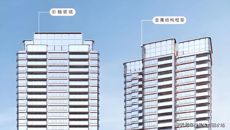 飞片挑檐与防火玻璃有机结合,既能满足防火规范要求,又能体现立面效果及气质,同时节约成本。大胆采用了隐框立柱超宽曲面屏设计,这种创新设计极大地开阔了视野范围,使得居住体验超越了许多一线城市的顶级写字楼和酒店,展现了其独特之处。