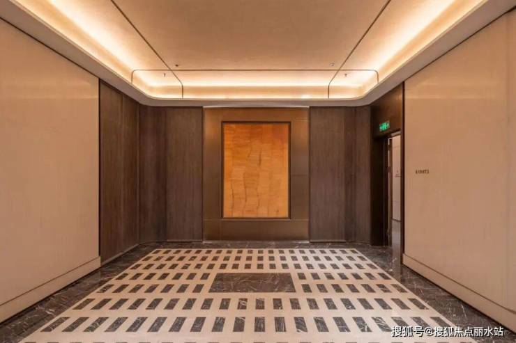 地下大堂以白色尼克石墙与深色木饰面构成冷暖对话,穹顶肌理漆、黑白拼花地坪与哑光古铜不锈钢线条交织,营造出步入顶奢酒店般的高雅氛围。