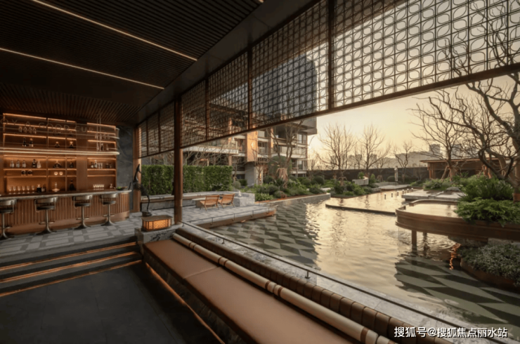 社区内部,保利拾光年·雅颂通过复合化功能场景营造,构建覆盖全龄段的社交空间,精准匹配不同群体的生活需求。作为社区核心社交场域,约750㎡琉光水庭与香槟金风雨连廊形成联动空间,可满足住户会客宴请、日常休闲等多元需求。下沉式摩卡会客厅与围炉雅庭,定位高端会客功能,为社交待客、邻里生活提供定制化场域。