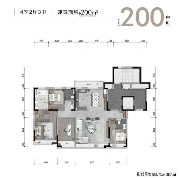 建面约200㎡朗境四居,升级尺度感,同时注重让空间陪伴家人成长,提供更大、更舒适、更融合的互动空间,大尺度采光、多功能、奢华主卧套房、大玻璃窗等亮点,承载不同家庭阶段、不同家庭成员的生活乐趣。