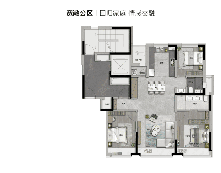 据《2023居住客群消费趋势年报》研究显示,越来越多用户开始更加关注居住空间对于身心健康、个性爱好、家庭关系、生活效率等各个方面的承载与促进。中交·和园建面约135-200㎡三居至四居,打破传统的空间壁垒,以科学的空间规划和人性化的功能优越排布,注重空间享受和实用性,升级尺度感,以“改善+宜居”的进阶生活方式,让生活多一重舒适与从容。