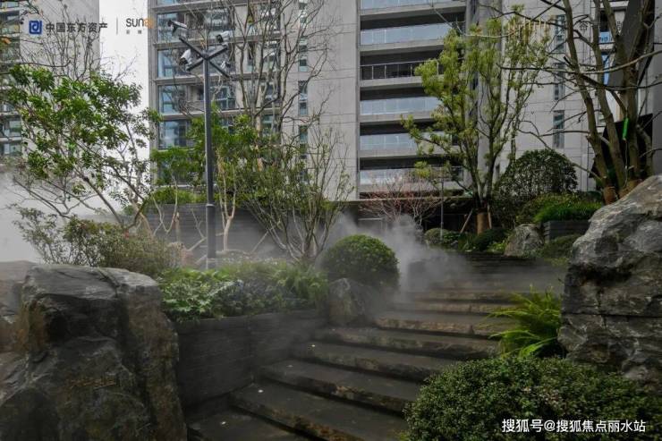 穿过约9米高的挑空社区大堂,进入中央景观园林,映入眼帘的是由13个小瀑布组成的44米长大型景观瀑布。