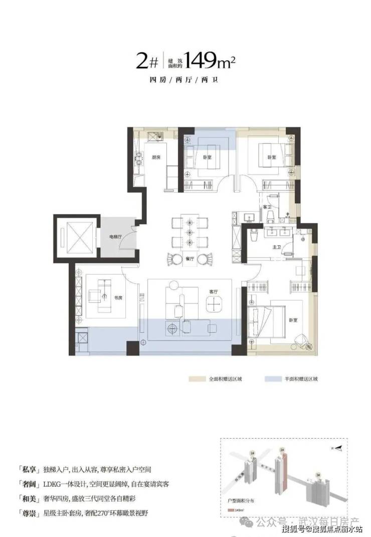 建面约149㎡小户型单价约2.7万-3.3万左右,总价约400-430万