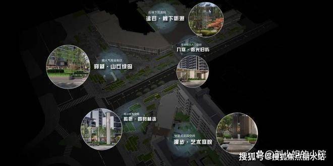 示范区景观设计概念融合东方意境与现代生活体验,将城市烟火气与小资强调融合至景观,搭建具有奢享氛围的五大生活场景,打造社区生活记忆点。