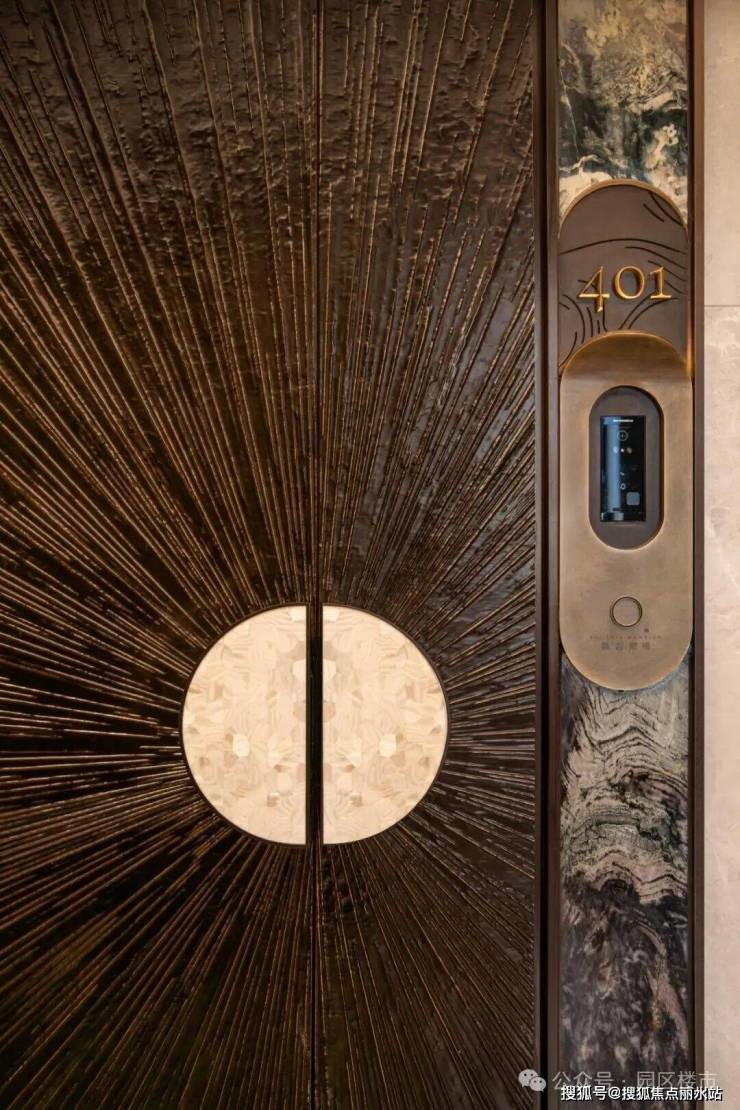 美学之外,匠心于内。蜂窝铝板与印度白玫瑰石材干挂立面,从建筑外部一体延伸至架空层内部,柔和了空间的边界,重点部位则以石材拉槽精准搭配金属线条。以美学的一体化设计,在光影流转间,营造出极具仪式感与尊贵感的归家序厅。