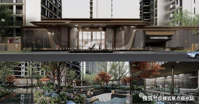 未来精工建筑 共筑瓯江封面建筑采用现代简约风格,售楼处电话400-8787-098接通后输入5678【营销中心】蓝灰玻璃与浅色系铝板交织,香槟色铝板点缀,搭配精致窗框比,与花榕共筑瓯江新封面滨水度假景观 回家即是享受国际知名设计师 Simon(IFLa 获奖)打造景观。近 40 米宽 8 米高奢阔酒店式归家大门,高端石材铝板配茶花元素与水景,温州难得门面。中央水景融合江畔宁静,风雨连廊串联景观,六大主题园林,杨帆水院为社交休闲核心,营造滨水诗意家园,回家即是度假。