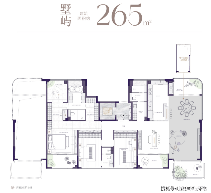 建面约265㎡,总共只有8套,一层一户,非常私密。