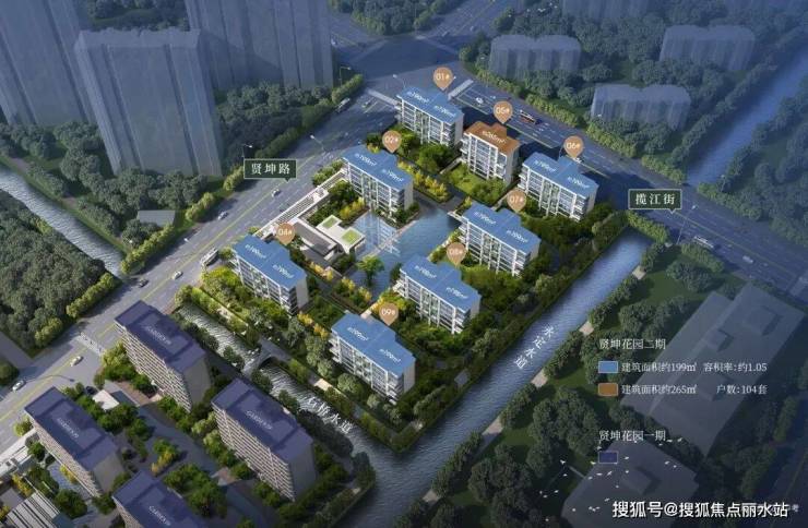 GARDEN19|贤坤花园两个地块紧邻,中间由一条河道隔开,有桥梁连通,沿路还打造有约400米中轴景观带,如此一来,两个小区既自成一体,又相互有机融合为一个大区园境。