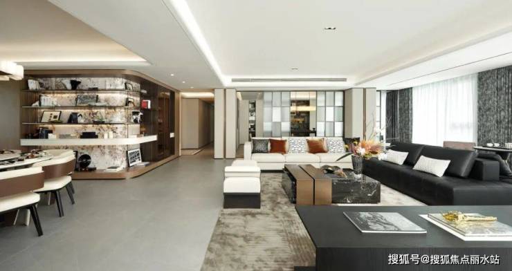 咏园打破传统空间构造,打造建面约275㎡奢阔样板间。南向约23米超大尺度开间,无开间朝南,拥有极佳的采光视野,与客厅相连的L型环幕观景阳台则为业主提供了一个绝佳的观景位,以270°广角视野,瞰揽环幕窗境。