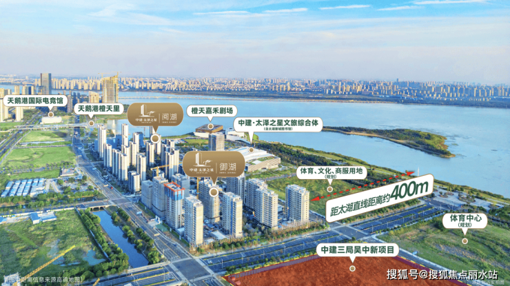 中建太泽之星御湖是由世界500强企业中建三局打造的" 太泽之星"系列收官之作,位于苏州吴中太湖新城CBD核心区域(橙天嘉禾剧场旁),紧邻太湖仅400米,是板块内稀缺的滨湖高端住宅项目。