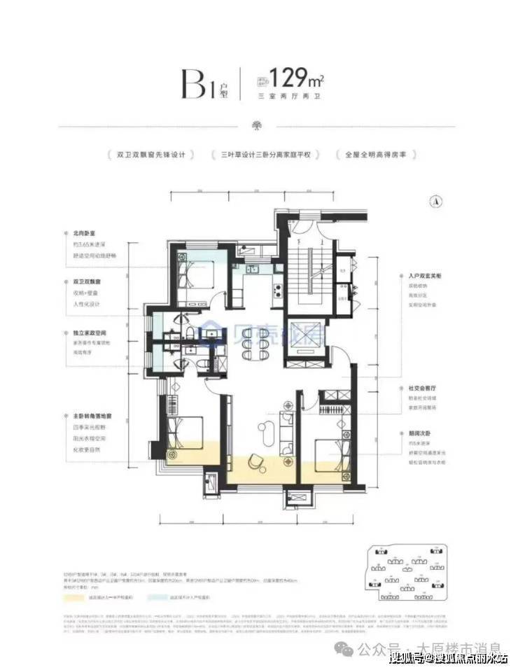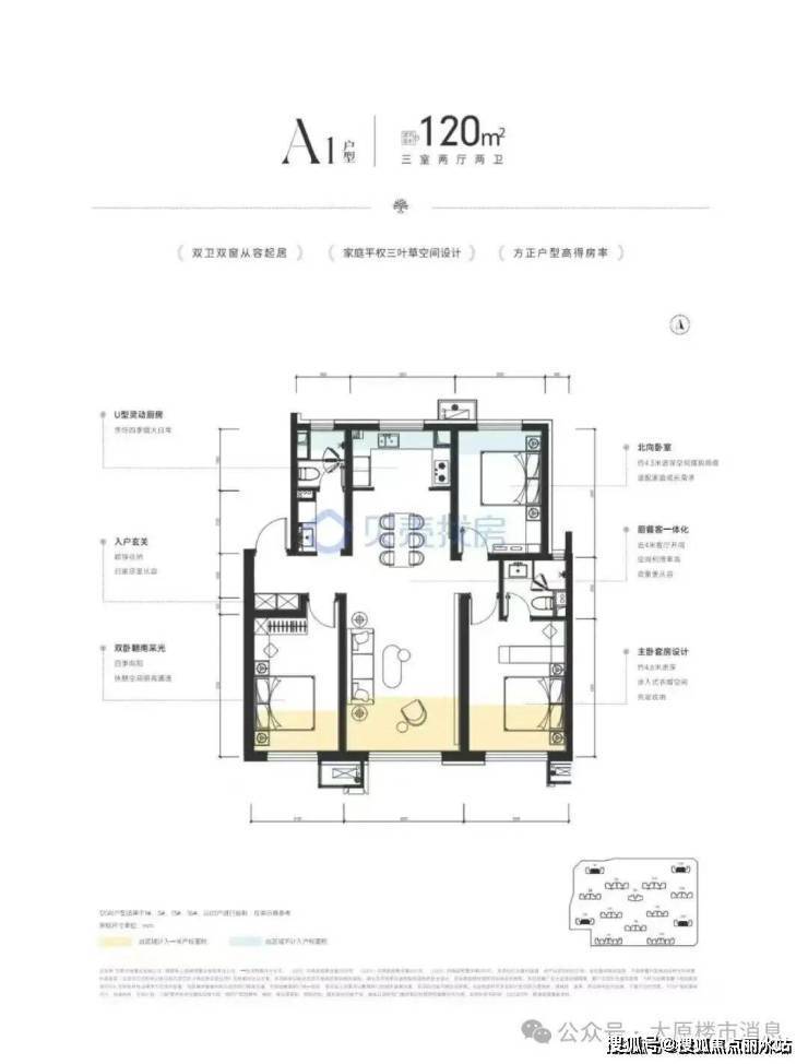 户型:经典三叶草设计,两梯两户等。