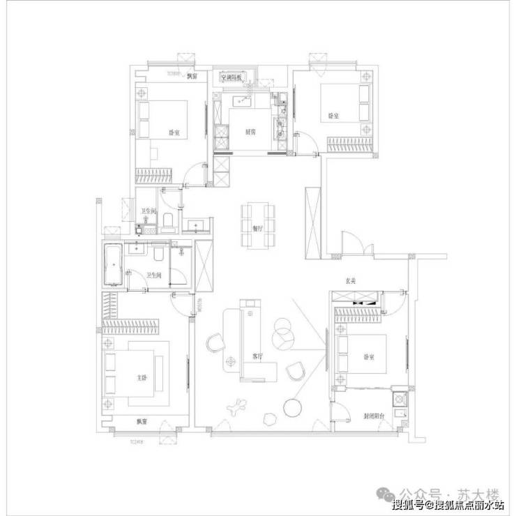 朝南开间15.55米,客厅与卧室双联阳台设计,阳台长度9.75米,超级主卧西侧带大观景窗。