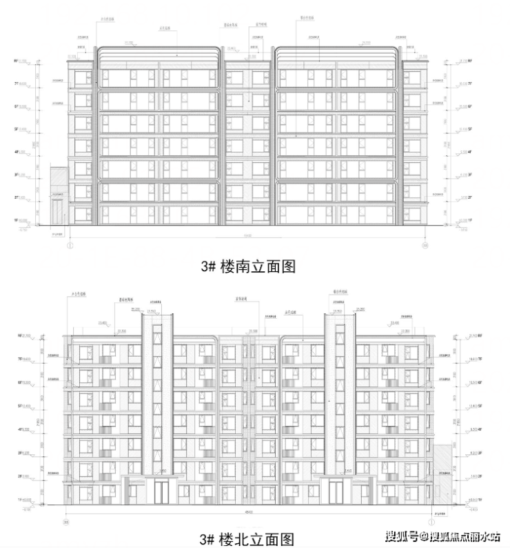 7#楼:首层高4.2米,标准层高3.1米,立面材质与3#楼相同。