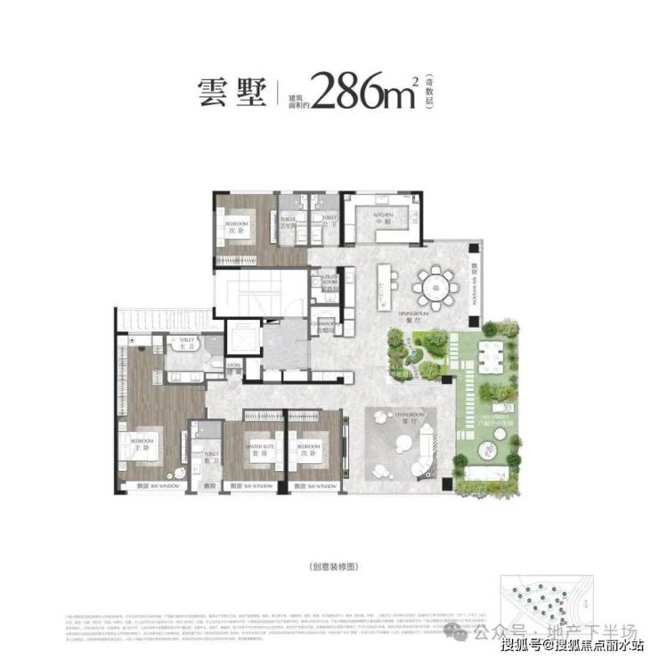 再看193平米户型,虽然面积不如286平米大得多,但是单论空中花园,以及窗外风景,一点不输286平米,像193平米户型奇数层空中花园的尺寸为11.3X3.2米=36.16平米,而286平米奇数层空中花园的尺寸为9.3X3.6米=33.48平米。