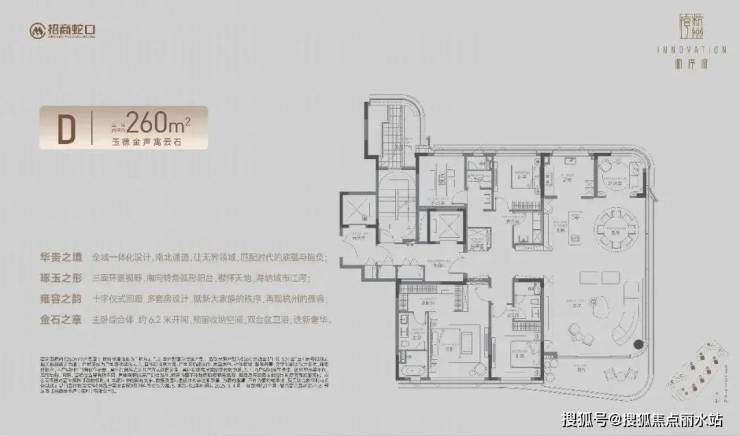 建面约260㎡户型以传统“漆砚”工艺为文化参照点。 通过材质转译、色彩解构、形制再生三重设计手法。