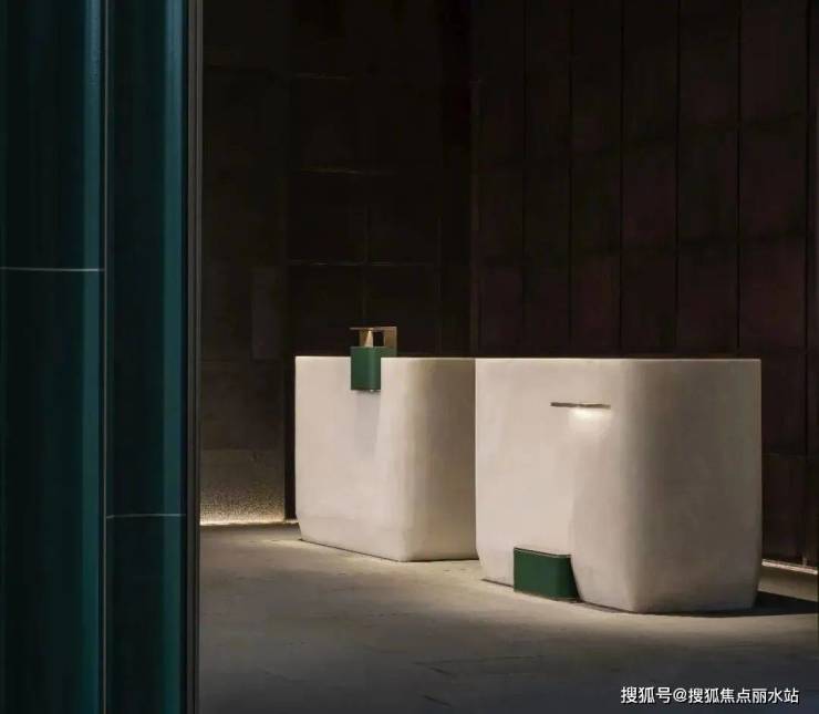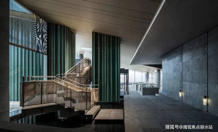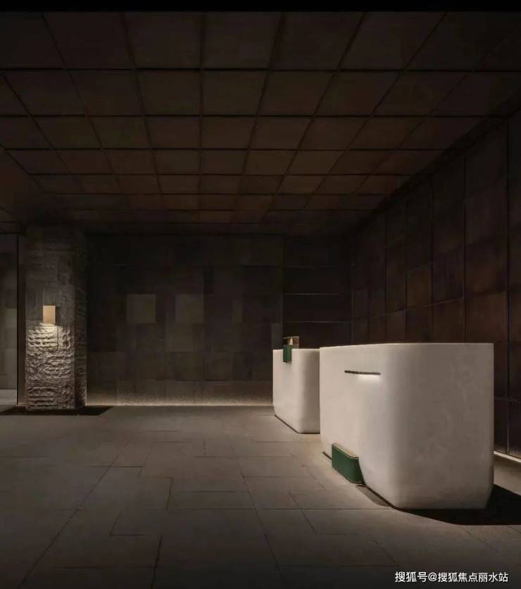 建筑选择涂山窑的陶板作为立面的表情,在室内设计中我们希望将建筑本身的物质在地性延续进来:一方面,确保空间逻辑的完整;另一方面,我们也希望空间的表情是相互对话的,陶板于建筑表面,只可隔水远观,无法触碰,人一旦进入室内,这种物质本身的极性,便能够被触碰到。