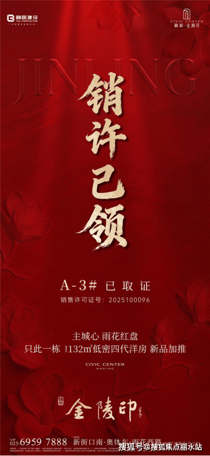 最新消息,颐和·金陵印A-3号楼销许已领,加推即火爆,132㎡“3+X”户型,进阶主城改善,奢阔尺度带来尊贵体验感,仅此一栋,臻稀44席全城热抢!