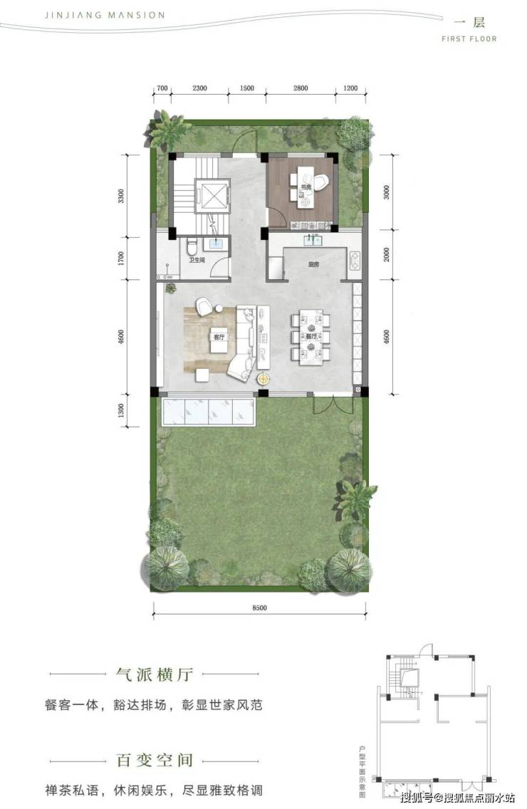 今天,我们就以折后总价约455万起(含2个车位,1幢5室),建面约215㎡的排屋户型为例,来看一下金江府带来的全维舒居生活。