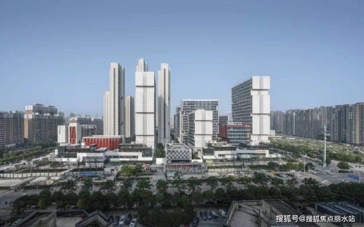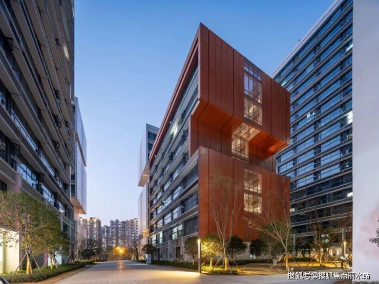 ·空间分层:整体空间结构分为三个层次,一是沿街布置的商业街区,连续的商业空间保证了街道空间的连续性;二是办公组团,富有变化的建筑体量形成第二个空间层次;三是住宅组团,以挺拔高耸的姿态形成第三个层次。整体错落有致,丰富了街区形态,与周边地块对比鲜明。