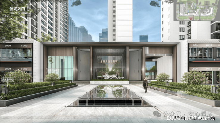 主入口空间:社区入口处设有迎宾水景辅以氛围地灯及艺术草坪灯,尽显归家仪式。