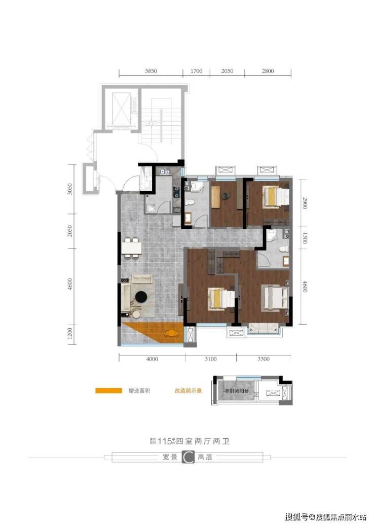 总价:小高层9500元/㎡;洋房11500元/㎡